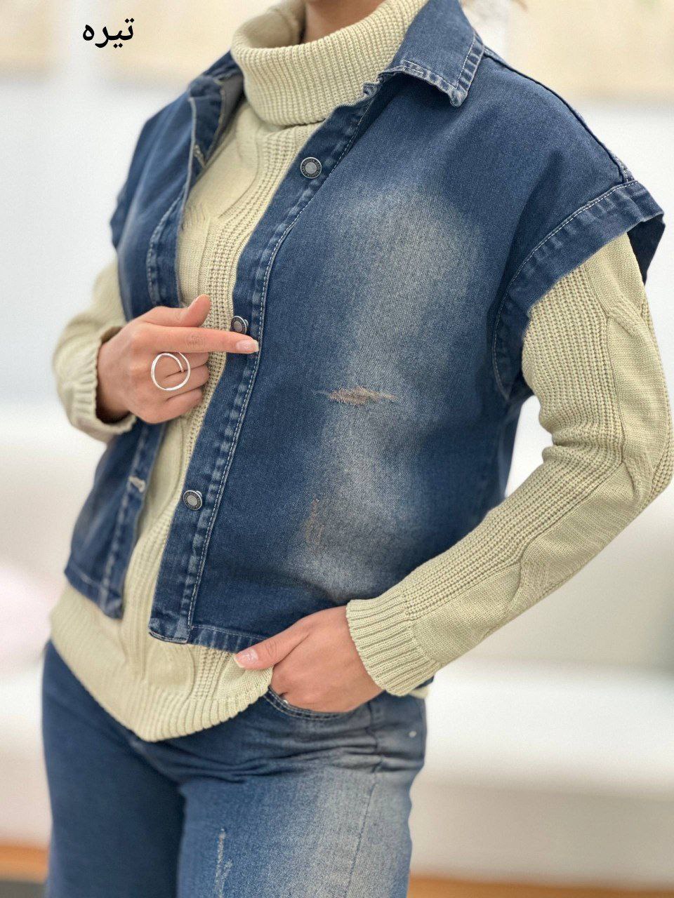 جلیقه جین زنانه/ جین اصل شسته شده و سنگ شور شده