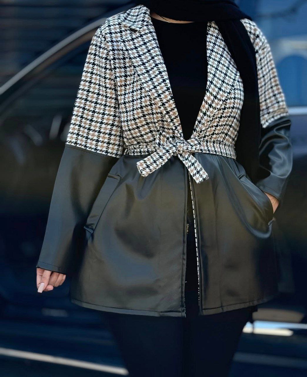 مانتو ترکیبی کمربند دار زنانه/چرم و توییت اعلا