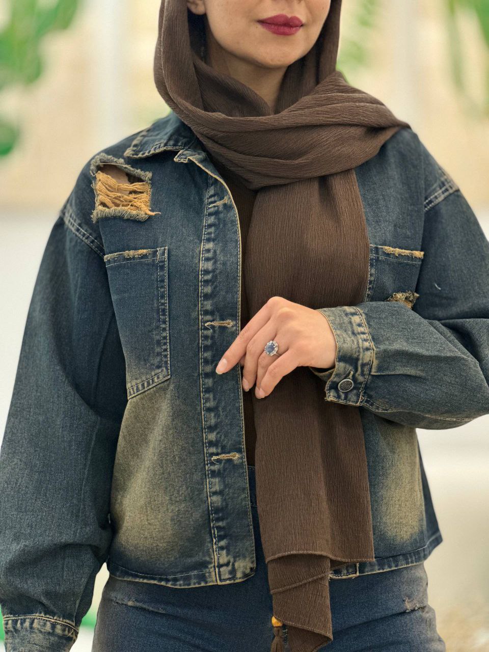 کت نگین دار زنانه/جین شسته شده و سنگشور شده