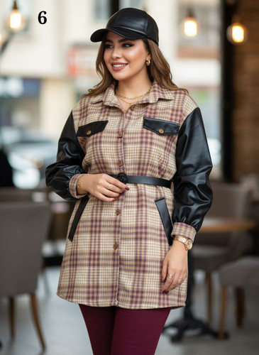 شکت چهار خونه آستین چرم زنانه /فوتر پشمی و چرم تیرکمونی
