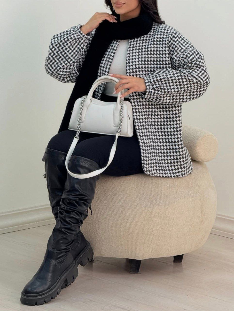 ناموجودشکت چهار خونه آستین چرم زنانه /فوتر پشمی و چرم تیرکمونی