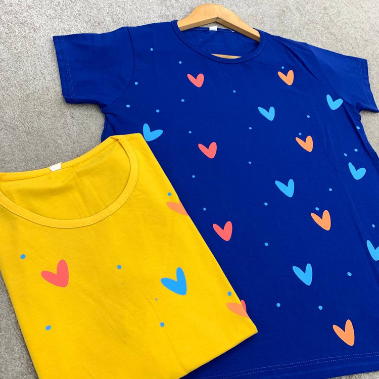 تیشرت پنبه طرح قلب ریز