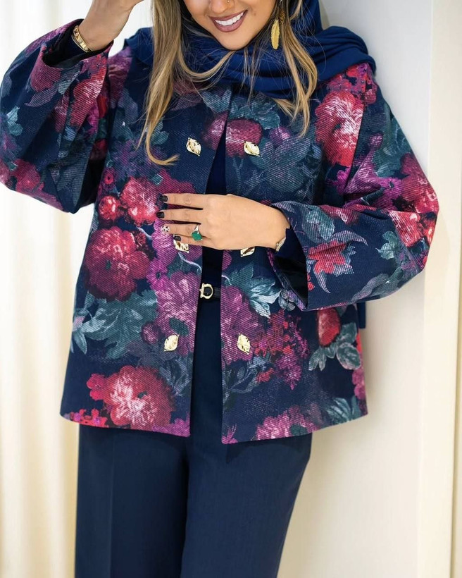 اندازه کت: قد:۷۳،قد آستین۶۸،دورسینه۱۱۲،دوربازو۴۰،دور کمر ۱۱۴،دورباسن۱۲۲
