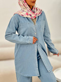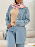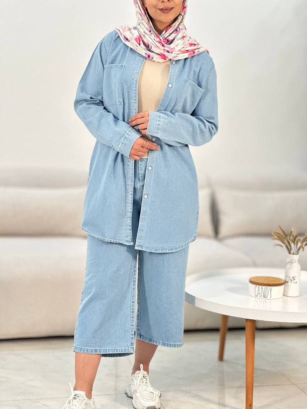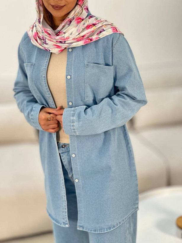 مانتوجین زنانه آسمان/جین اصل سنگ شور شده