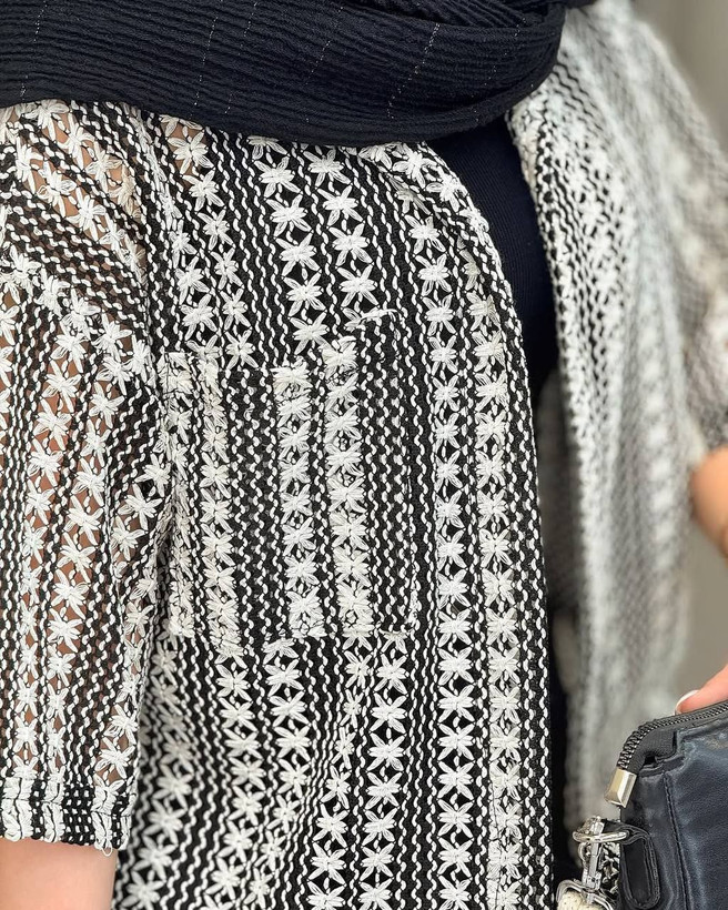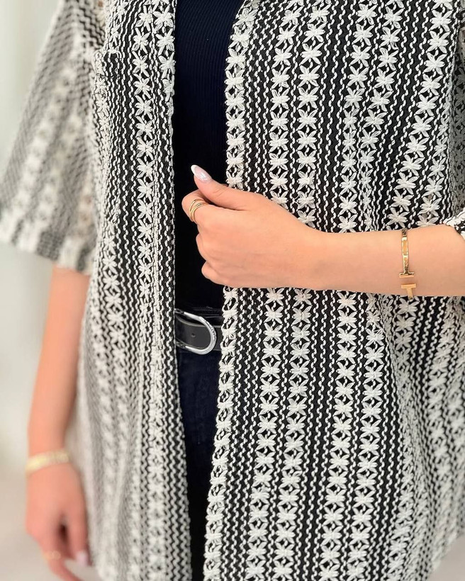 مشخصاتقد۶۶،قد آستین۶۰،دور بازو۴۶،دور سینه۱۲۰،دور کمر۱۲۰،دور باسن۱۲۲