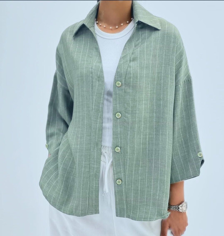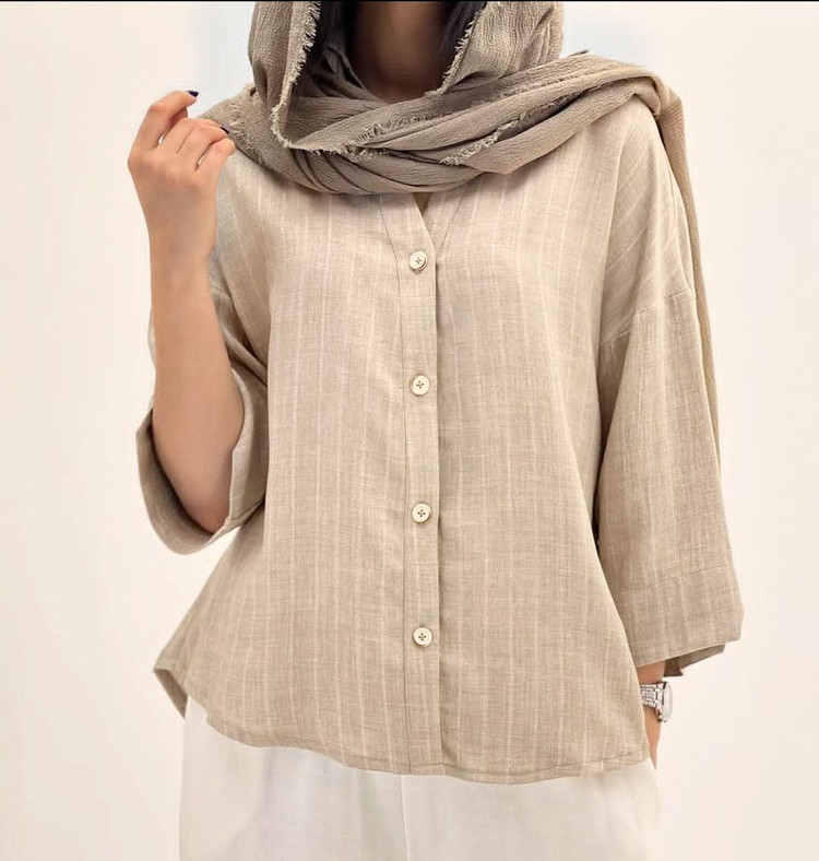 مشخصات: قد۶۷،قد آستین۶۰،دور بازو۵۰،دور سینه۱۳۰،دور کمر۱۱۶،دور باسن۱۲۰