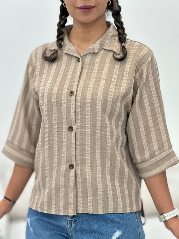 مشخصات: قدجلو۵۸،قدپشت۶۶،قد آستین۵۲،دور بازو۵۰،دور سینه۱۱۶،دور کمر۱۱۴،دور باسن۱۱۸
