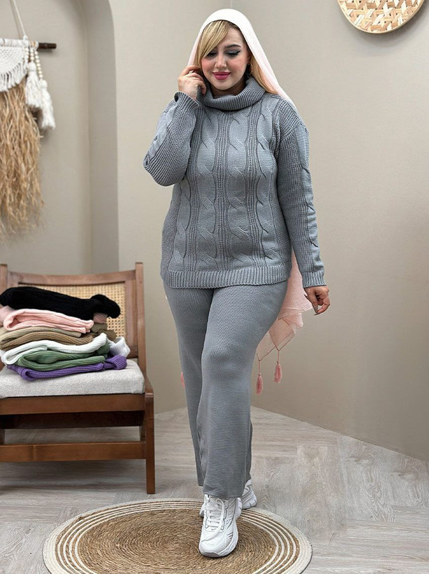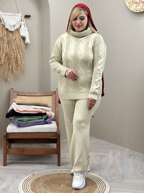 ست زنانه یقه شل مارپیچی/بافت آکرلیک بسیار لطیف و گرم بالا