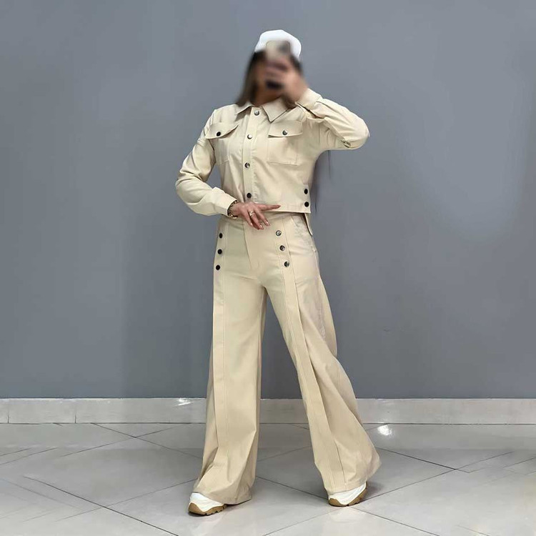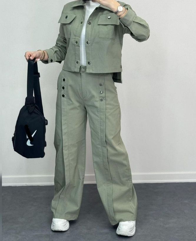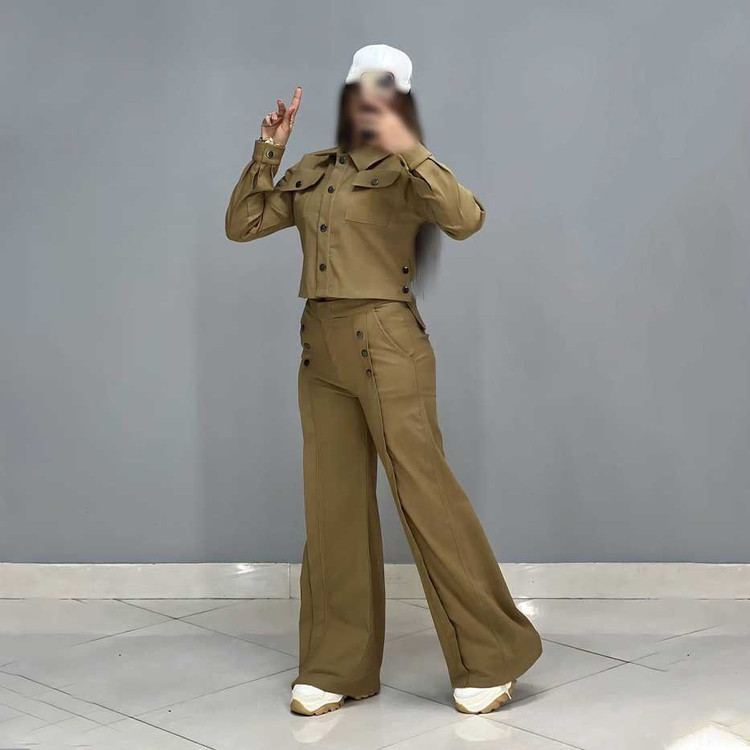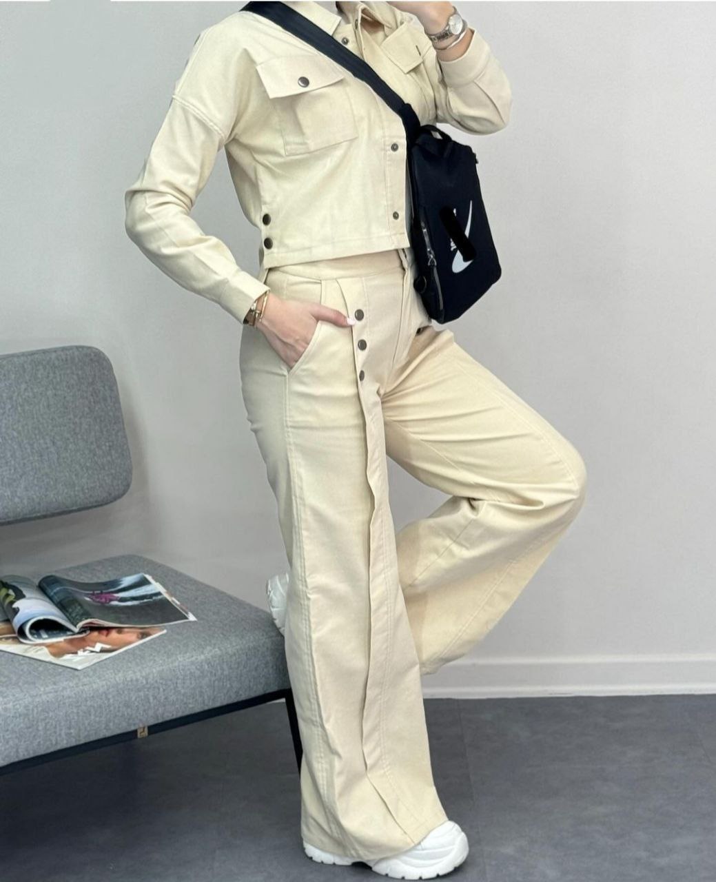 مشخصاتقد جلو۵۰،قد پشت۵۸،دور سینه۱۱۰،قد آستین۷۱،دور بازو۴۲،قد شلوار۱۰۰
