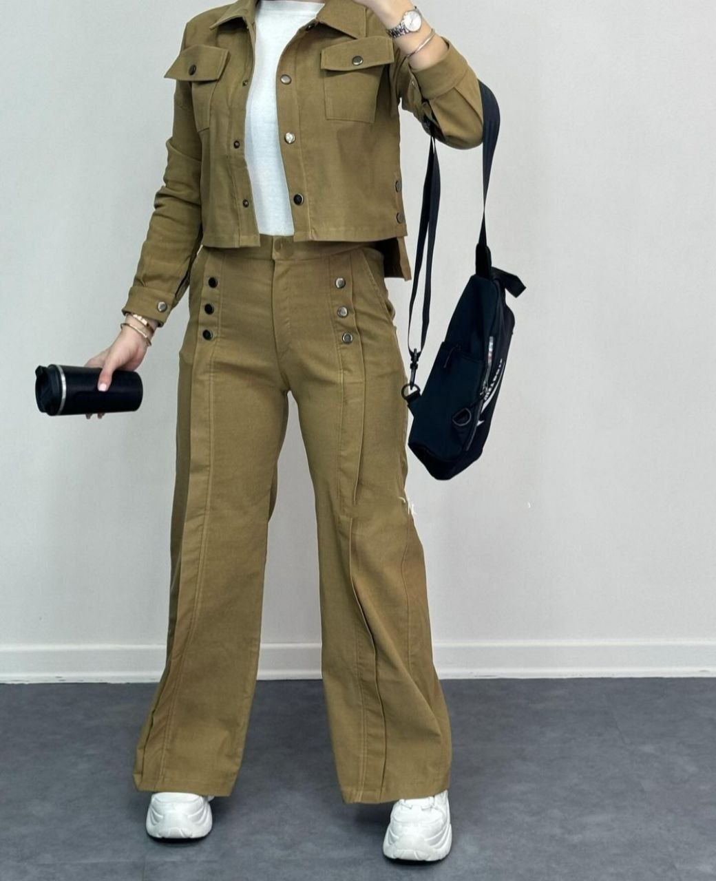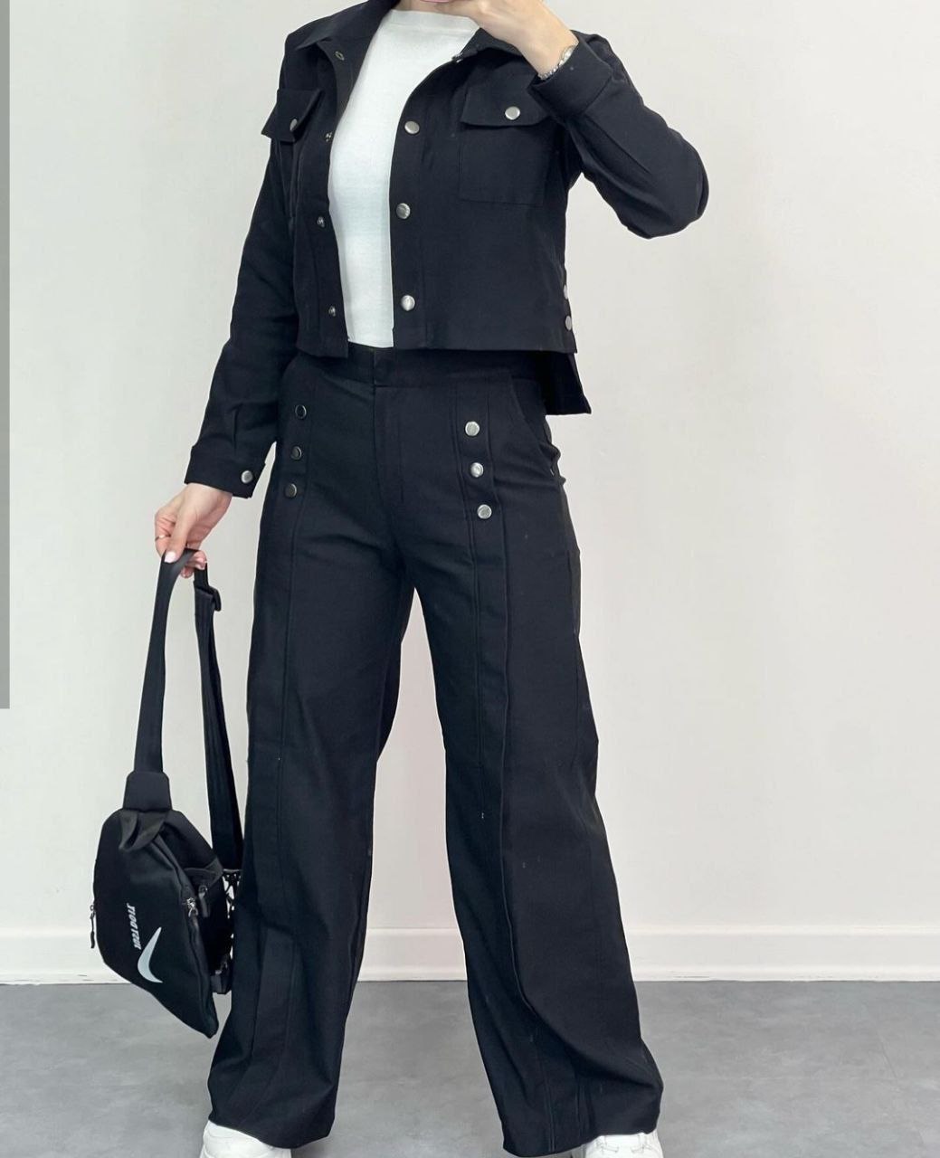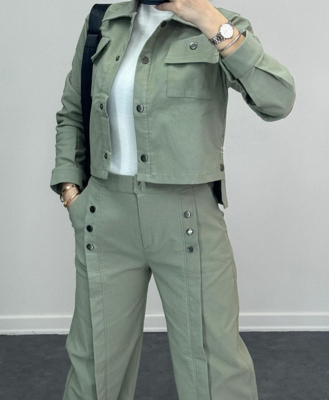 مشخصاتقد جلو۵۰،قد پشت۵۸،دور سینه۱۱۰،قد آستین۷۱،دور بازو۴۲،قد شلوار۱۰۰