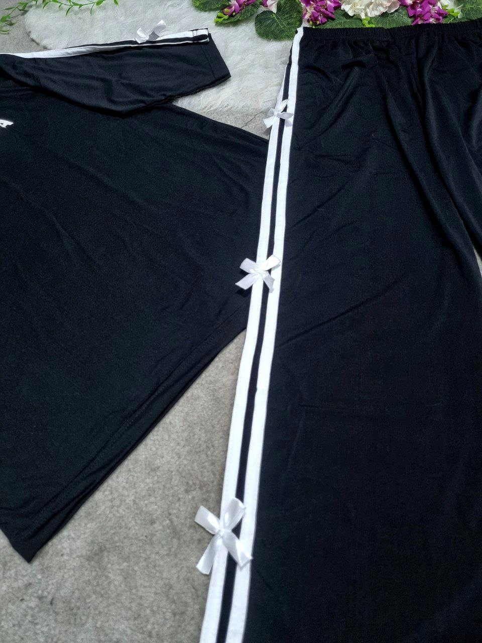 ست تیشرت شلوار زنانه پاپیون/فلامنت نرم و فول کشی