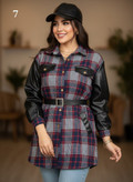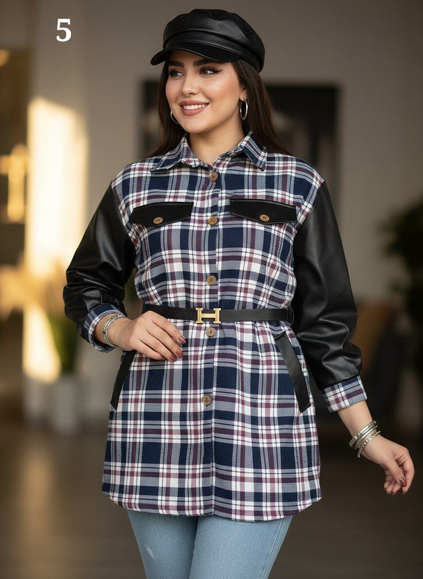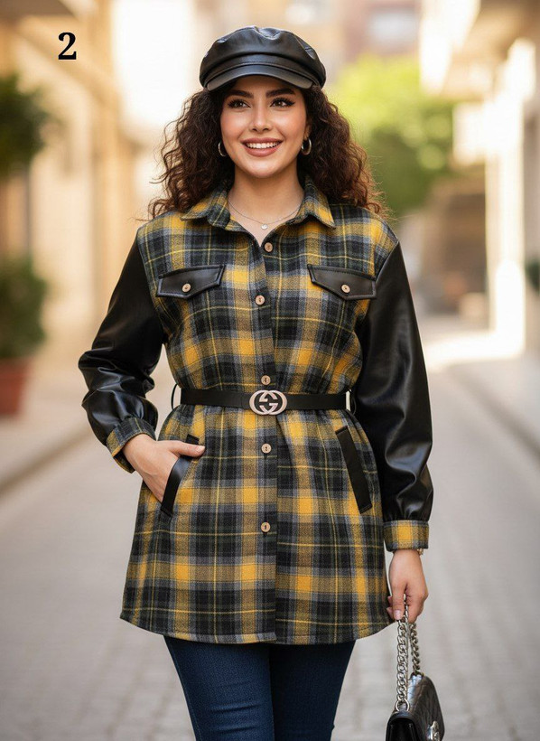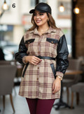 شکت چهار خونه آستین چرم زنانه /فوتر پشمی و چرم تیرکمونی