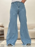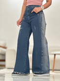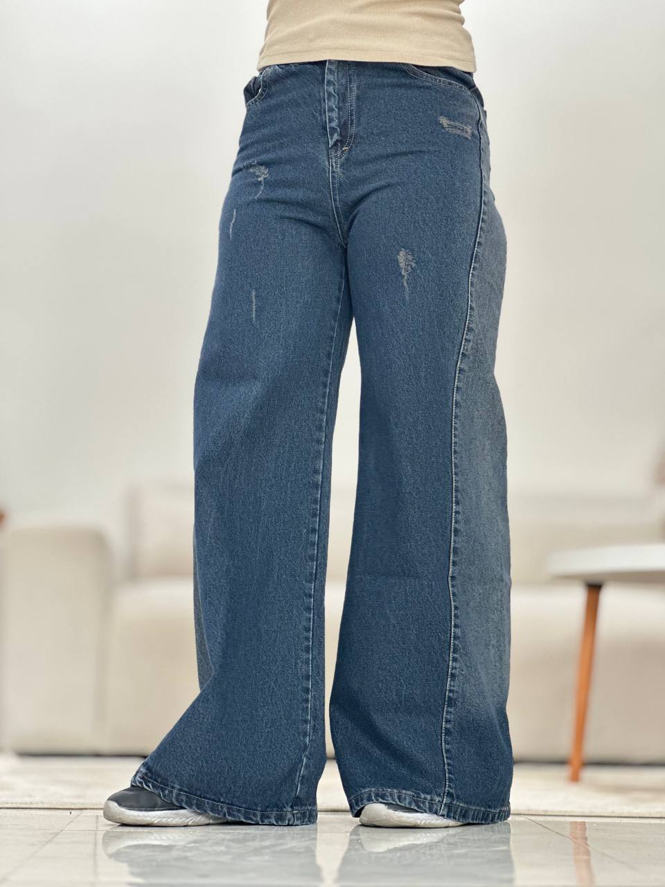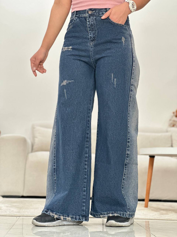 شلوار شافل زنانه/جین ضخیم شسته شده ‌‌سنگ شور شده