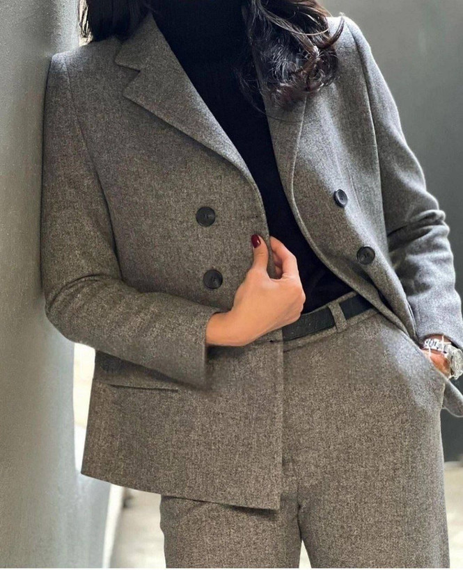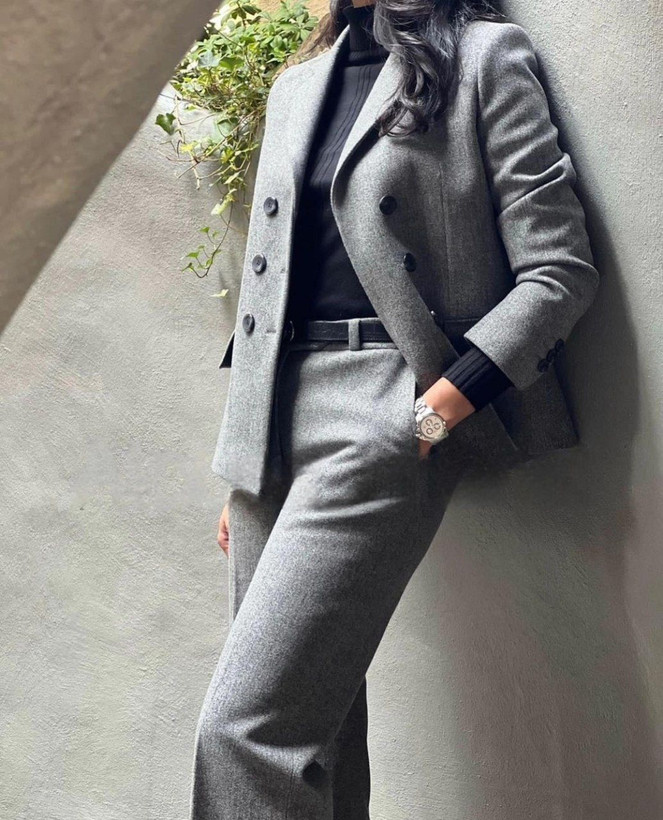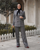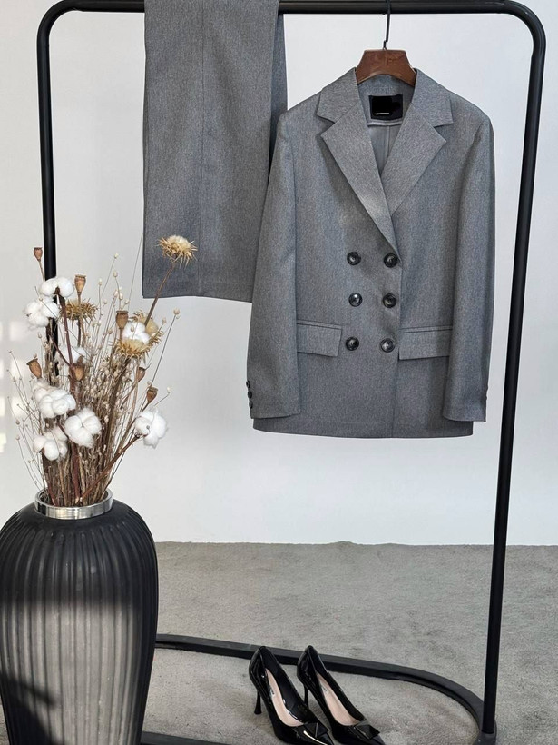 این کت و شلوار را با یک جفت کفش پاشنهدار مشکی یا کفش لوفر رسمی ست کنید. استفاده از اکسسوریهای ساده مانند ساعت کلاسیک یا گردنبند ظریف میتواند ظاهر شما را کامل کند. برای روزهای سرد، یک پالتوی بلند هم میتواند انتخابی ایدهآل باشد.
