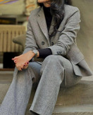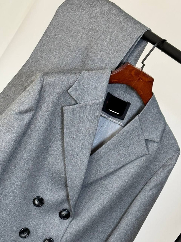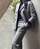 - کت دو دکمهای با برش دقیق که استایلی کاملاً رسمی و حرفهای ارائه میدهد.