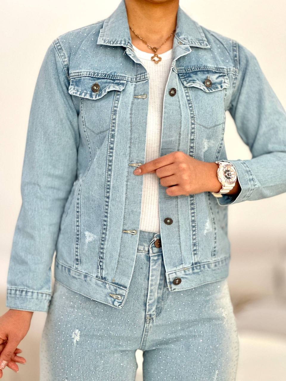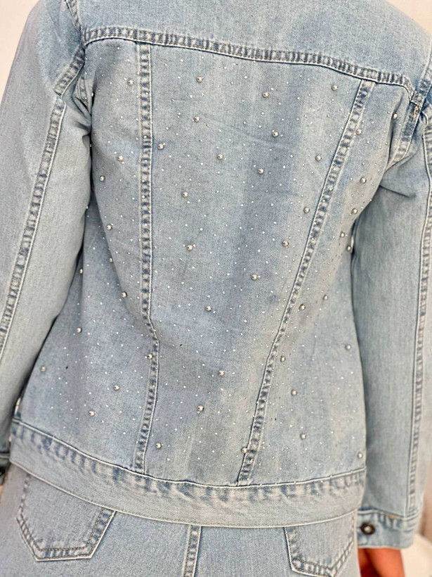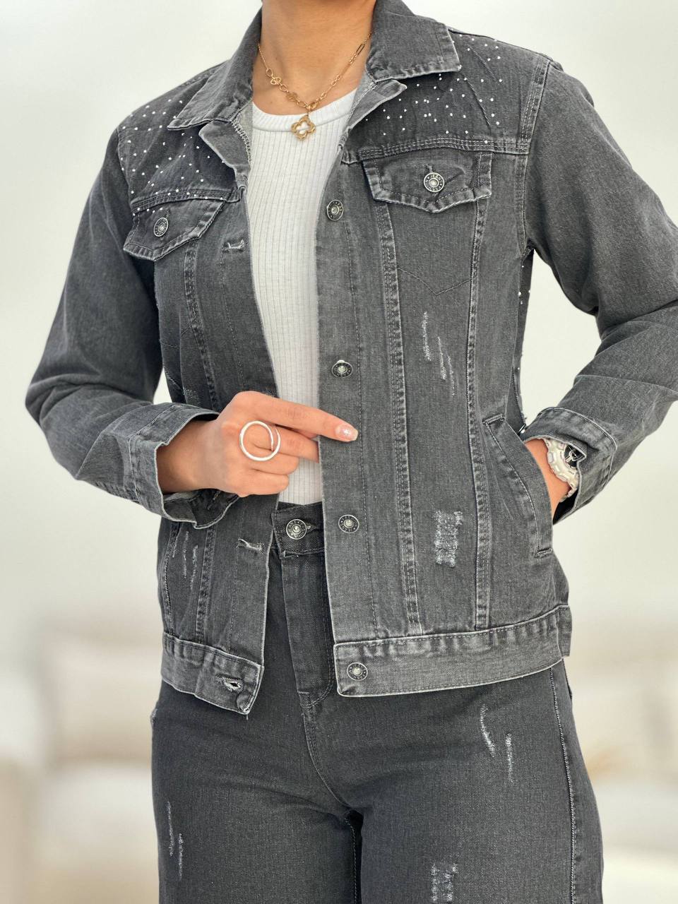 کت نگین دار زنانه/جین شسته شده و سنگشور شده