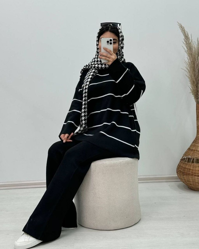 مشخصات: قد۷۲،دور سینه۱۳۰،قد آستین۷۲،دور بازو۵۰،قد شلوار۱۰۳