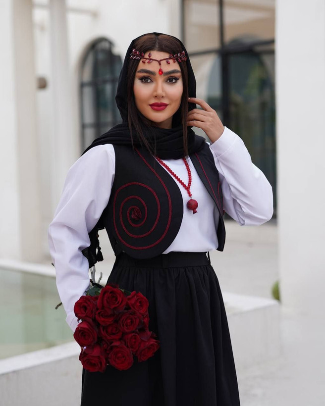 مشخصاتقد شومیز۵۶،دور سینه۱۰۴،قد آستین۵۴،دور بازو۴۰،قد جلیقه۴۸،دور سینه۱۰۴،قد دامن۹۵