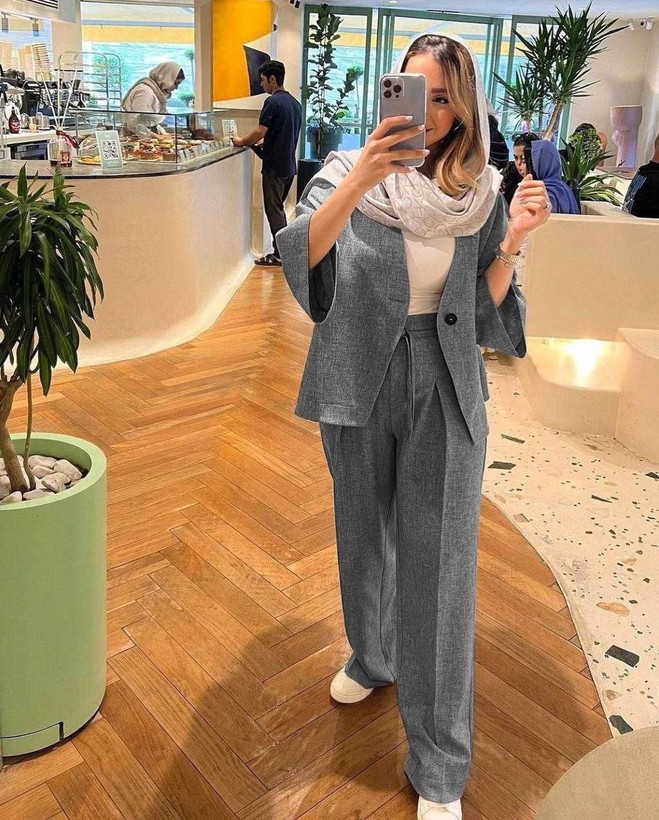 ست کت و شلوار لنین شانتون زنانه