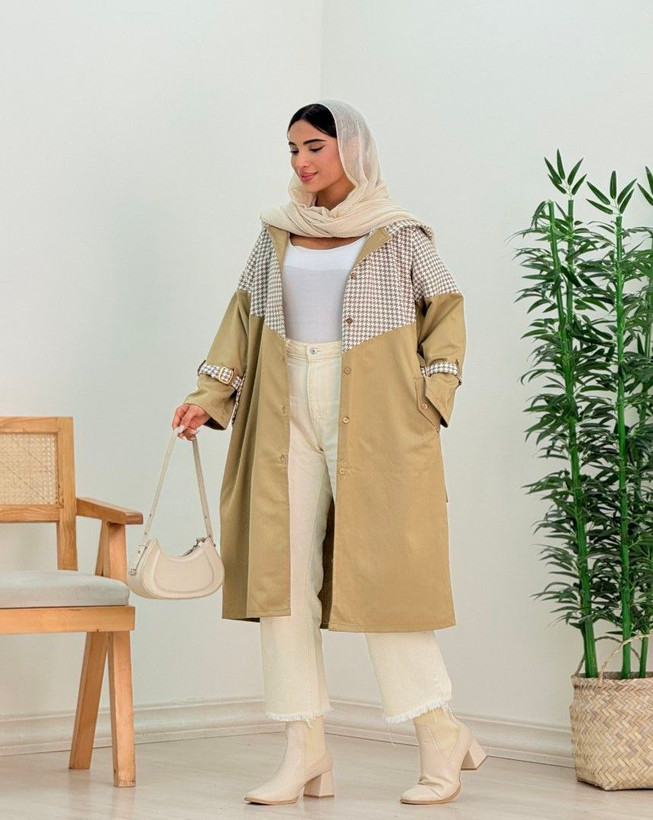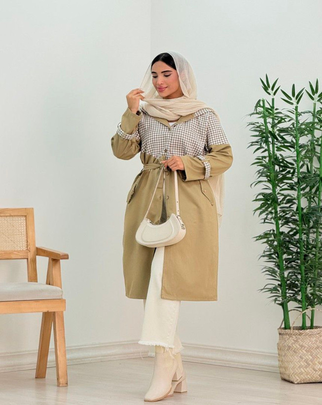 🌈یه بارونی ترکیبی بلند با قیمت استثنایی و عالی مناسب استایل روزمره و مجالس