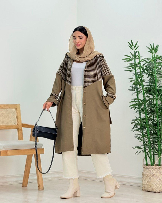 🛍باورنی ترکیبی کلاهدار بلند