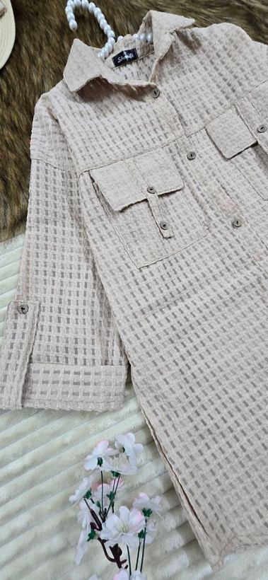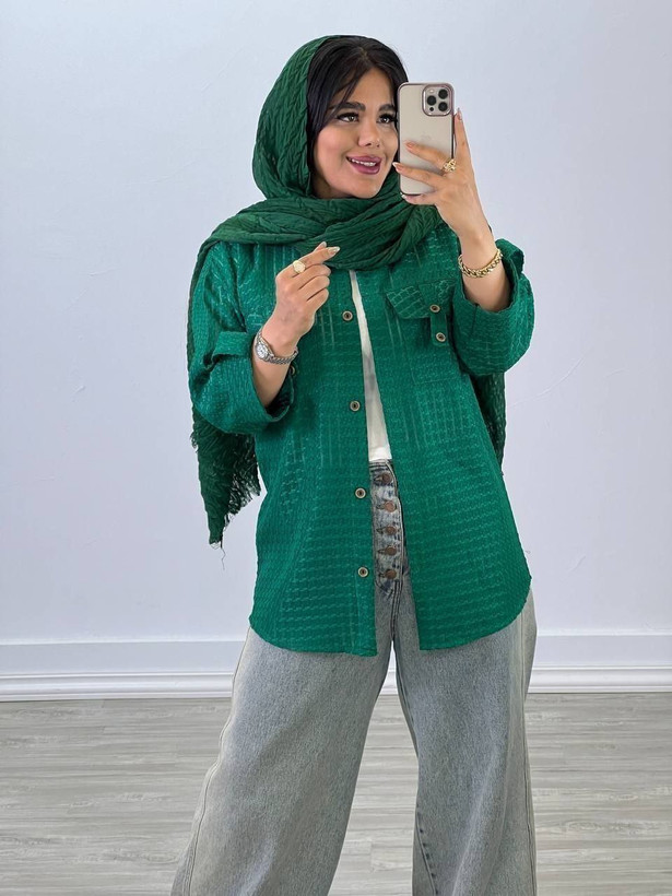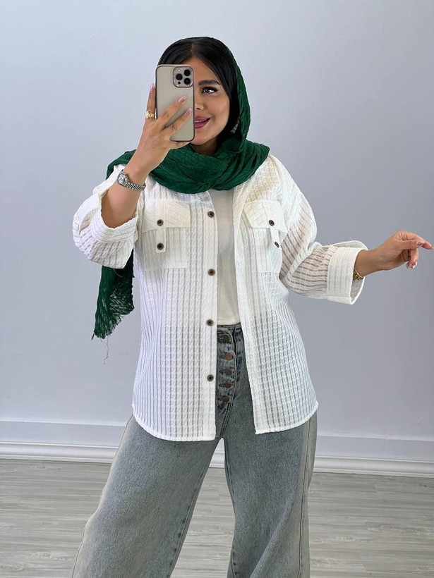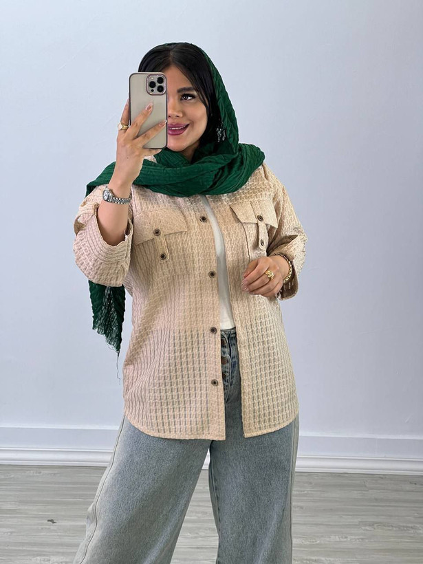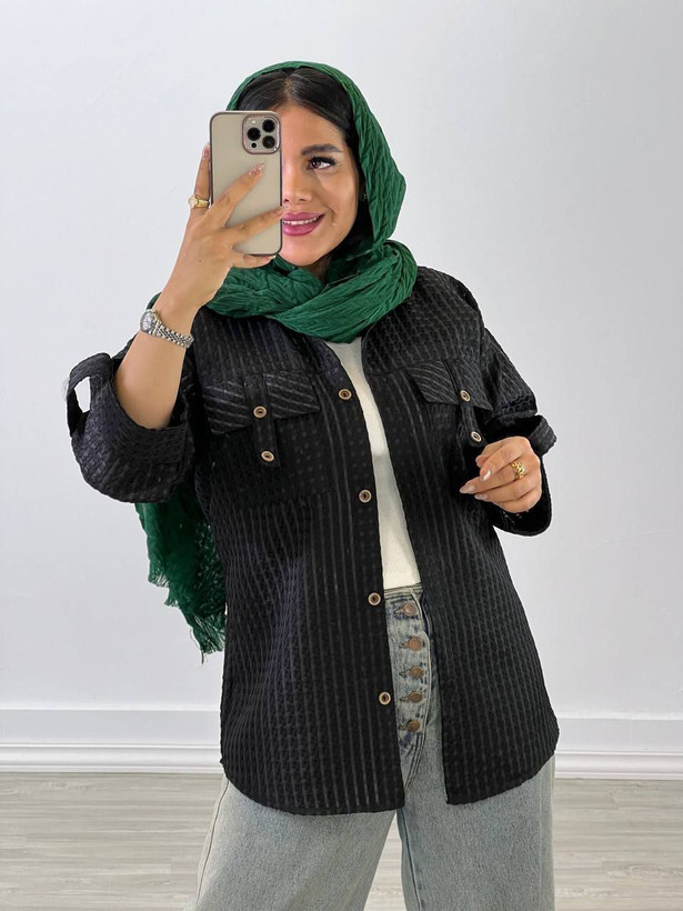 مشخصات: قد۷۵،دور سینه۱۱۲،دور باسن۱۱٠،دور بازو۴٠،قد استین۵۵