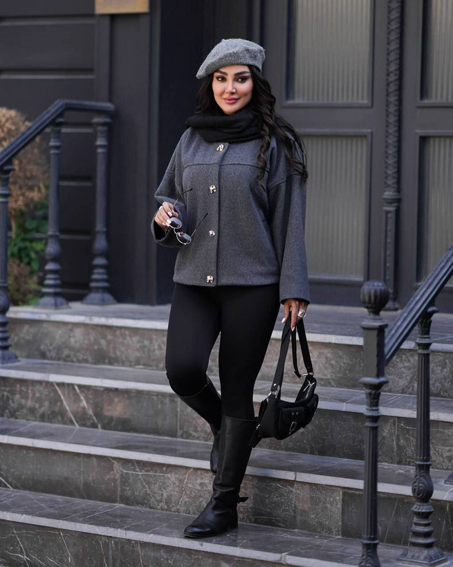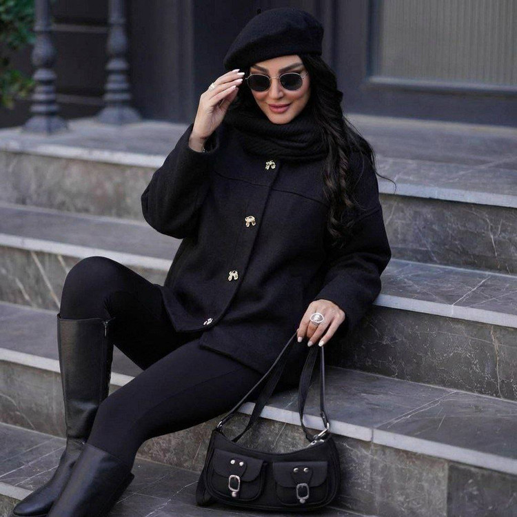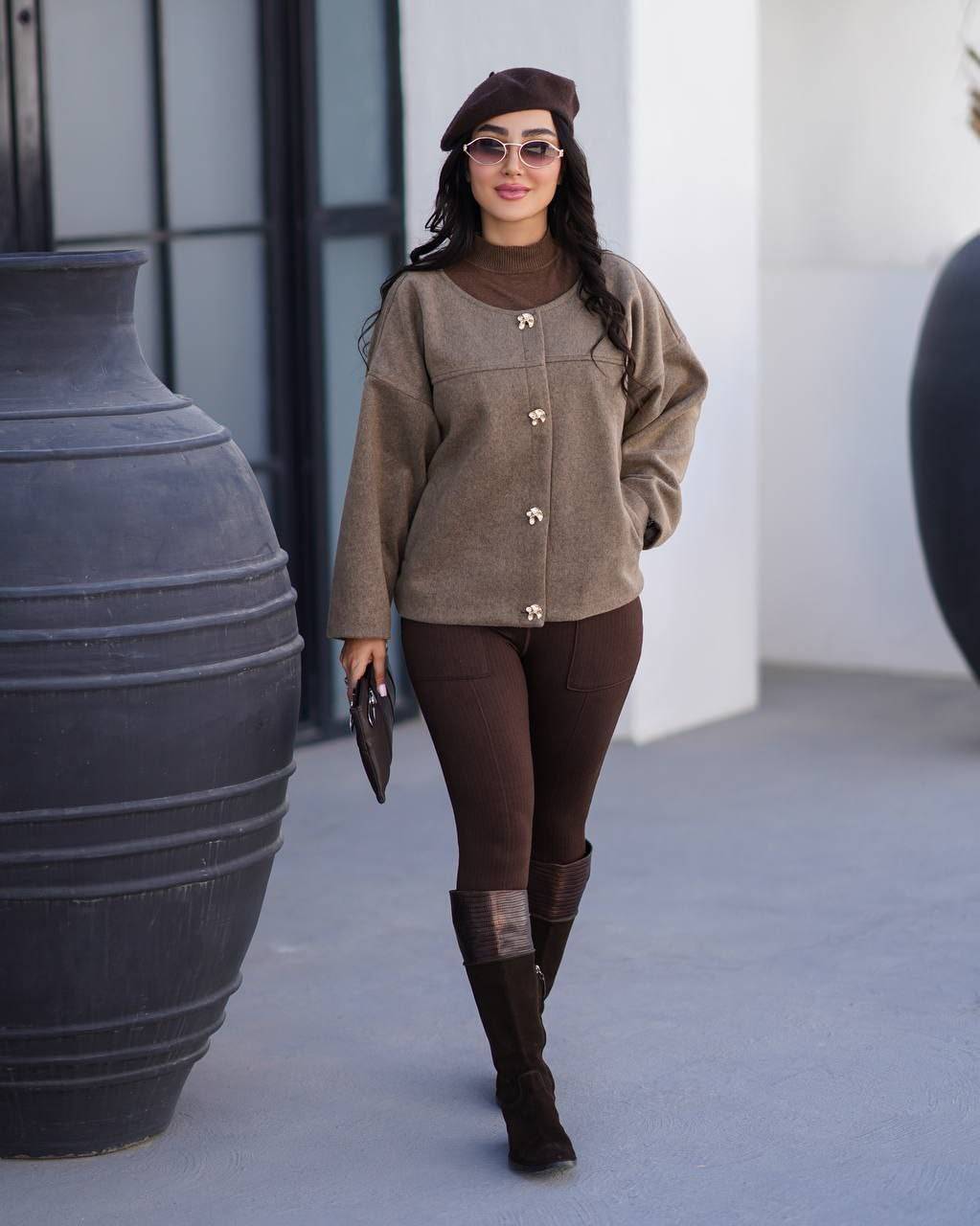 مشخصات: قد۶٠،قد استین۶۵،دور بازو۵۴،دور سینه۱۳٠،دور کمر۱۲٠،دور باسن در حالت کشسانی۱۲۴