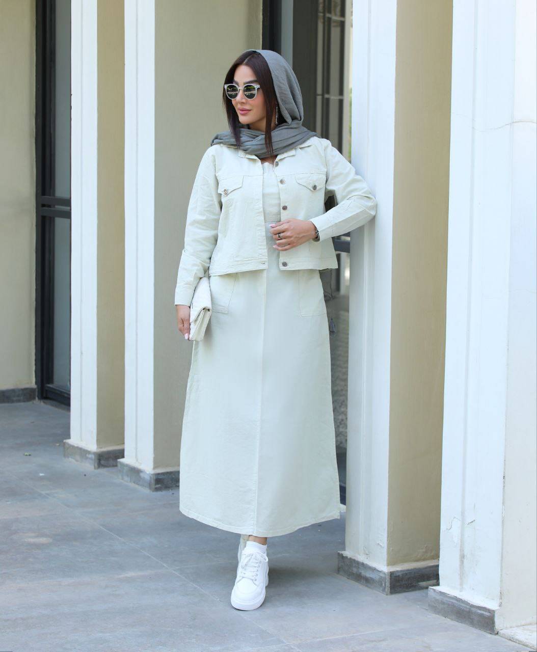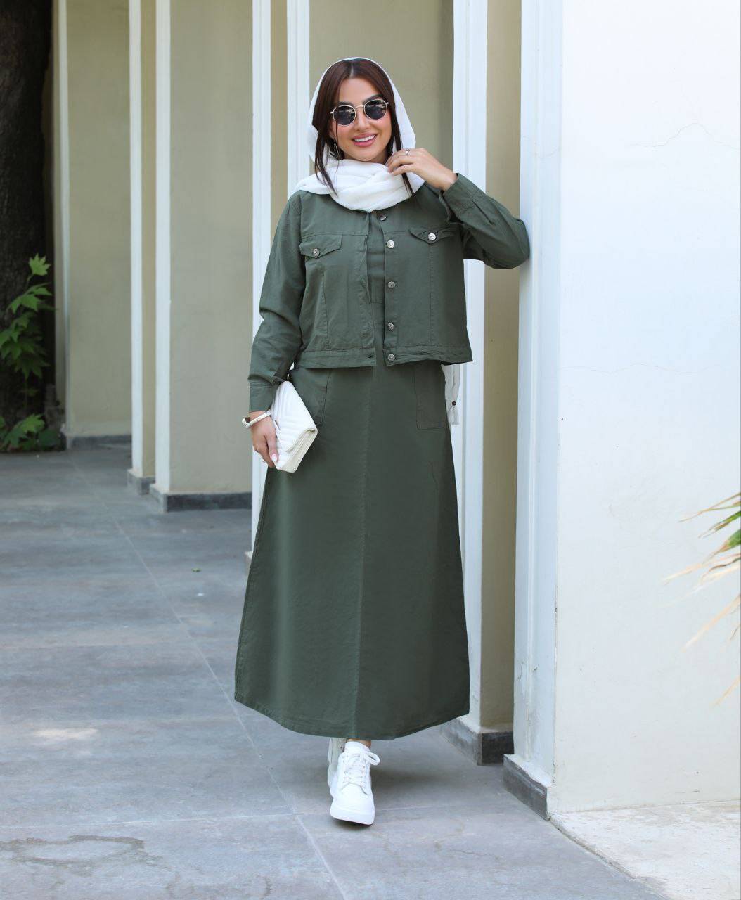 اندازه های محصول: قد کت۵۰،دور سینه۱٠۸،قد استین۶۹،دور بازو۳۸،قد سارافون۱۳۵