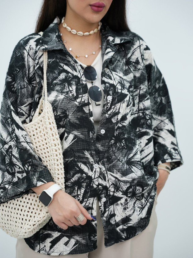 مشخصات: قد۷٠،قد استین۶٠،دور بازو۵٠،دور سینه۱۲۴،دور کمر۱۲٠،دور باسن۱۲۲
