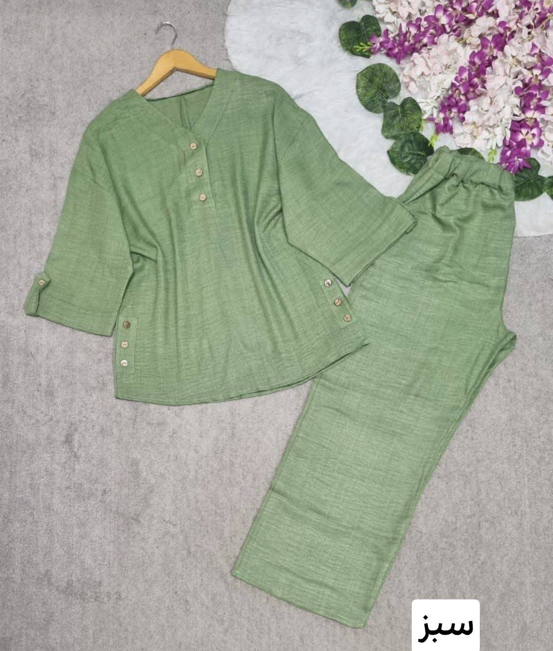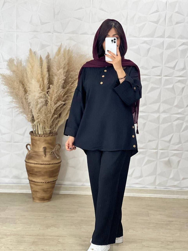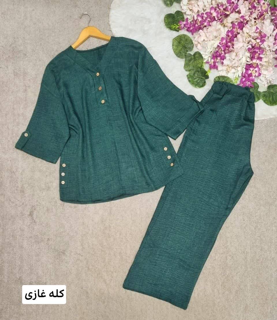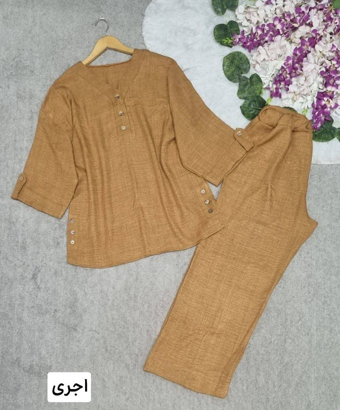مشخصات: قد۷۴،دور سینه۱۲٠،قد استین۵۷،دور بازو۴۲،قد شلوار ۱٠٠،دور ران۶۶