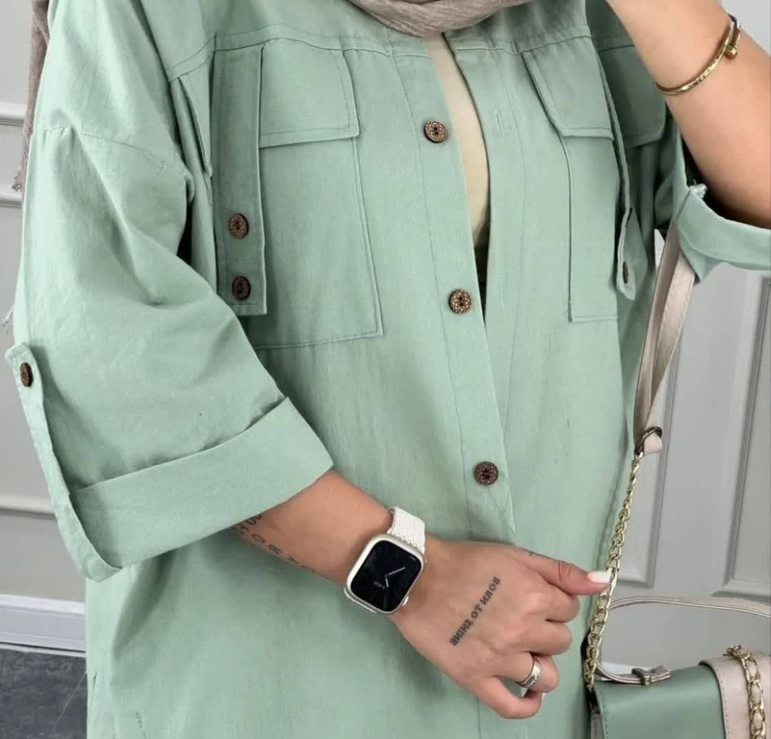 مشخصاتقد۷۸،دور سینه۱۲۴،قد از یقه استین۵۳،دور بازو۴۲