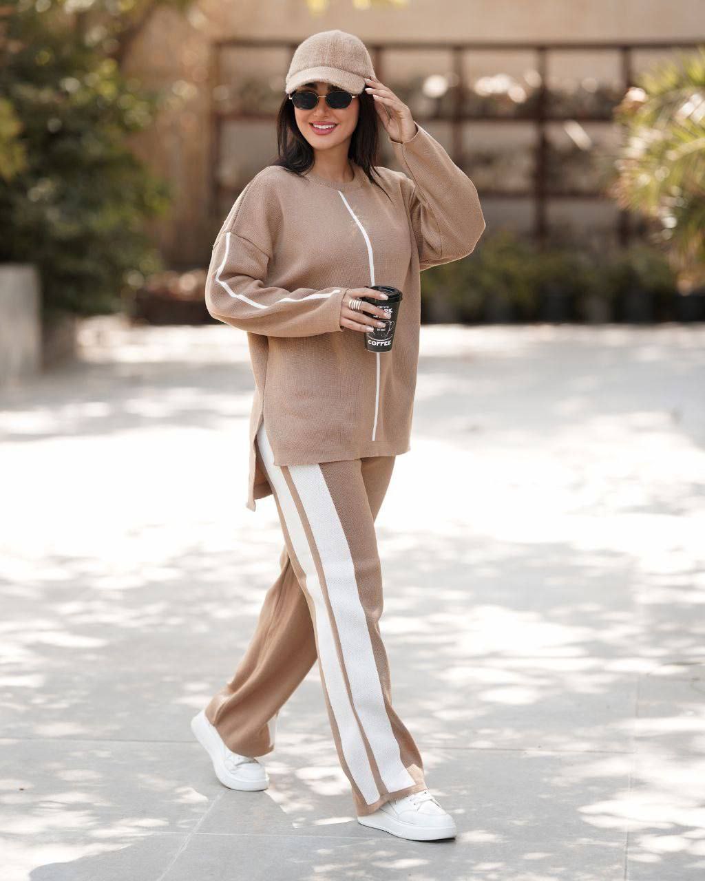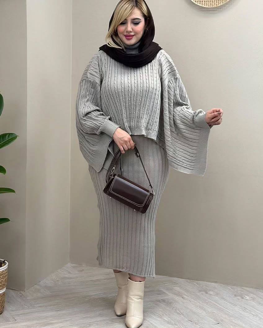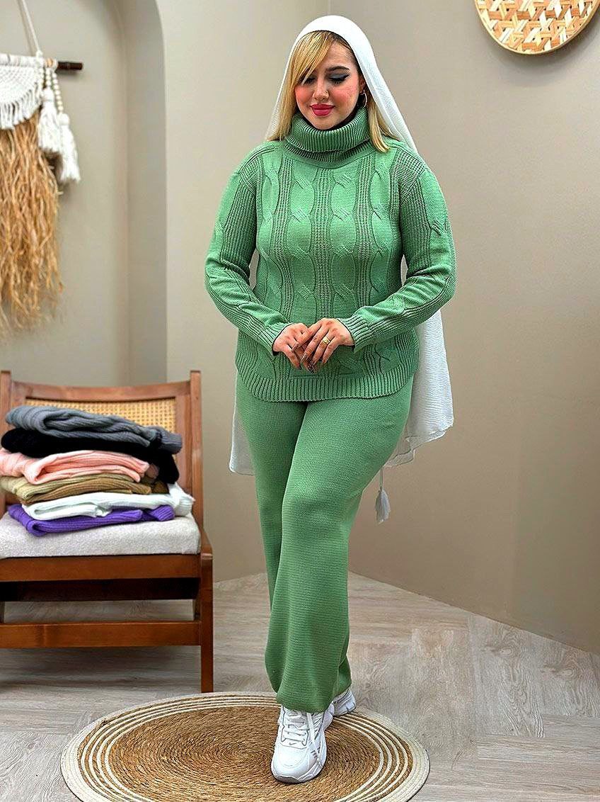 ست زنانه یقه شل مارپیچی/بافت آکرلیک بسیار لطیف و گرم بالا