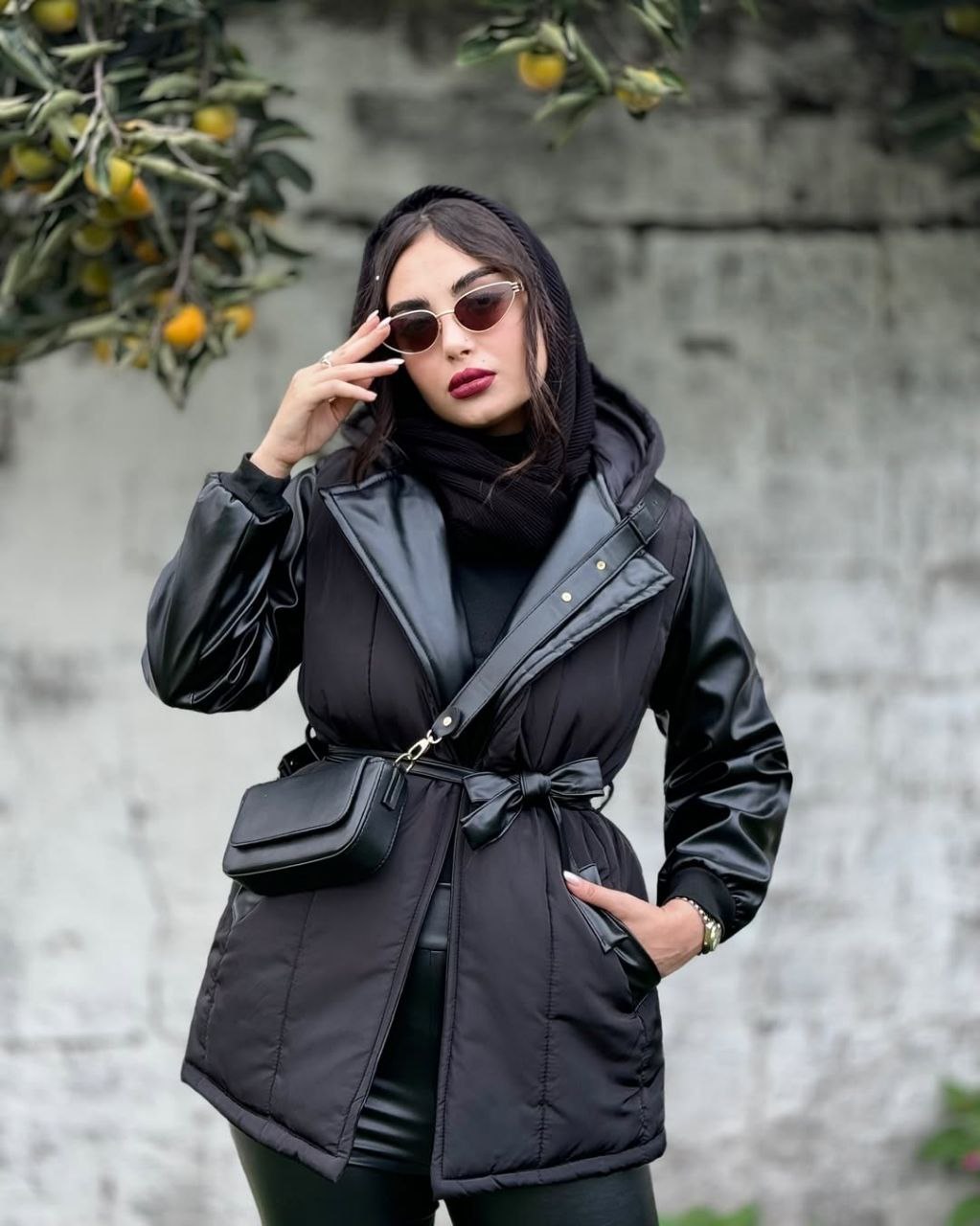 کاپشن زنانه مونیکا/مموری ضد آب و چرم تیرکمونی اعلا